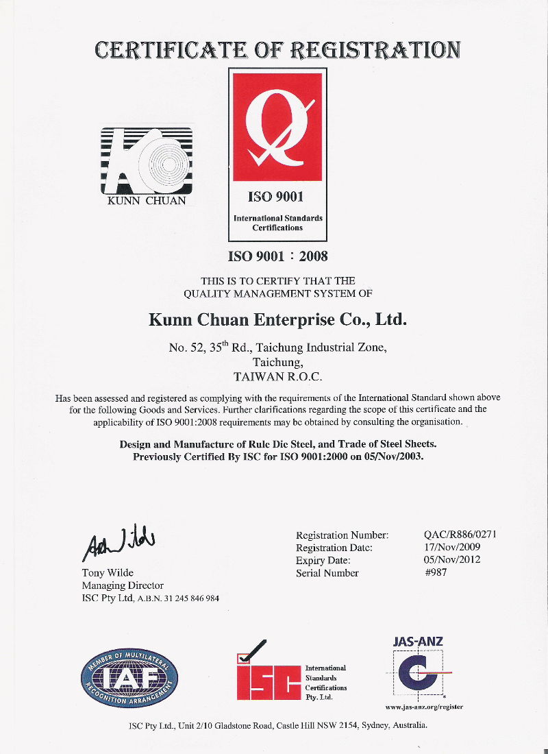 Factory : No. 52, 35th Rd. Taichung Industrial Park, Taichung,Taiwan TEL:+886-4-23597366 FAX:+886-4-23591324 Main Office: No. 8, 34th Rd. Taichung Industrial Park, Taichung, Taiwan TEL:+886-4-23597372 FAX:+886-4-23596465 E-mail:sales@kunnchuan.com Copyright (C) KUNN CHUAN Enterprise Co., Ltd. All Rights Reserved. |